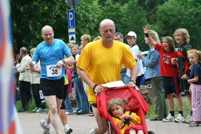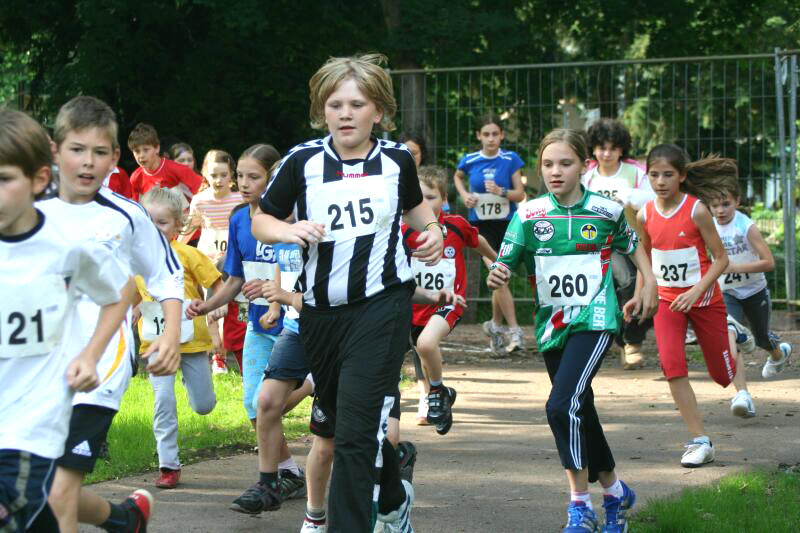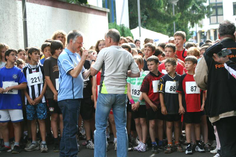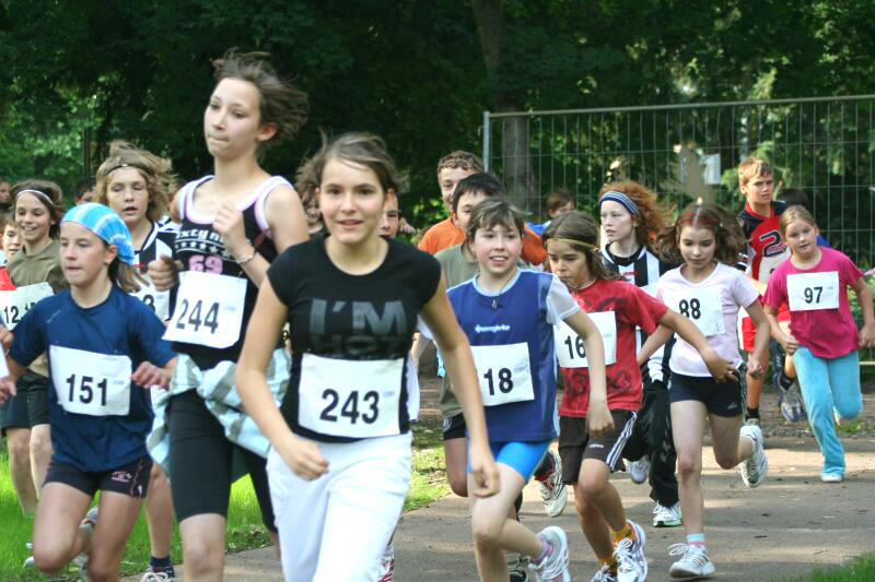 Am Samstag, dem 02.06.2007 war es dann soweit. Die Anmeldungen übertrafen unsere kühnsten Erwartungen. Besonders beim Schülerlauf herrschte mit fast 200 Teilnehmern einen Riesenandrang. Pünktlich um 17.30 Uhr schickte Bürgermeister König die Kids auf die Strecke. Unter dem Beifall der vielen Zuschauer liefen die Schüler 3 Runden durch den herrlichen Burgpark mit Ziel.