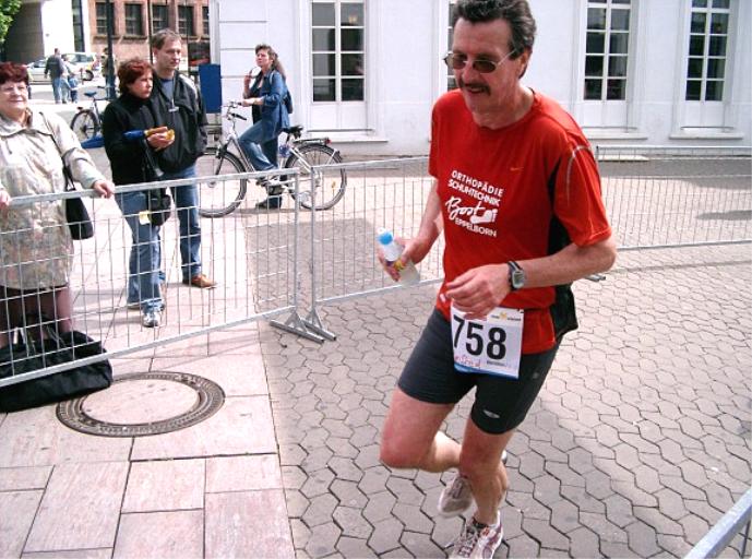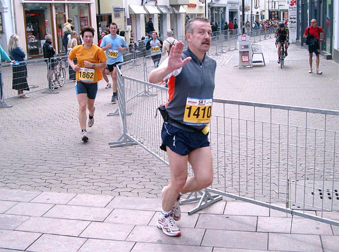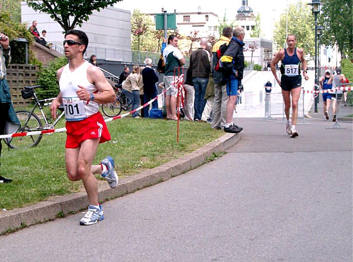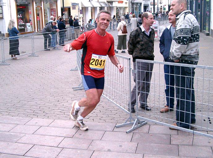 Die Strecke war für die Läufer nicht so attraktiv wie für die Zuschauer. Es war ein Rundkurs von 10.5 km, auf der einen Saarseite hin und auf der gegenüberliegenden Seite zurück, mit jeweils einem Abstecher durch die gute Stube Saarbrückens, dem St. Johanner Markt. Hinzu kamen in jeder Runde 2 Brücken mit den entsprechenden Steigungen. Die Marathonis mussten diese Runde 4 x und die Halbmarathonis 2 x laufen. Für die Zuschauer gab es ständig was zu sehen. Nach 1½ Stunden kam für die Läufer erschwerend die Sonne zum Vorschein.