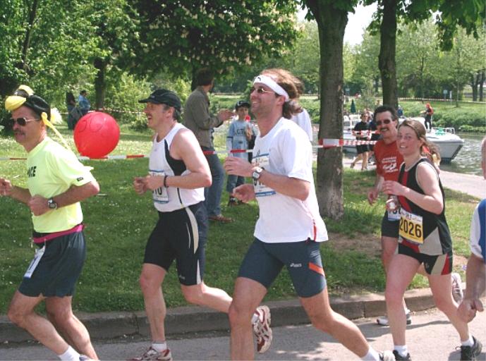 14.05.2006 - Zum ersten Mal wurde in Saarbrücken ein Marathon veranstaltet. Roland Raber, Heinz Schuh, Manfred Schmitt und Jörg Ewen liefen den Marathon und Gerhard Blass und Stefan Maas starteten auf der Halbmarathonstrecke. Beide Läufe wurden um 10.00 Uhr an den Saarwiesen unterhalb des Staatstheaters gestartet. Bei 13° und bewölktem Himmel herrschte eigentlich ideales Marathonwetter.