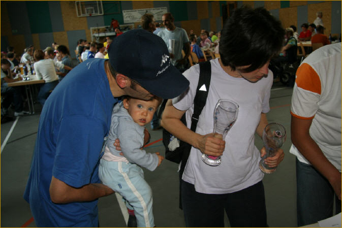 Unser Jubiläumslauf stand von Anfang an unter keinem guten Stern. So musste unser erster Termin wegen vereister Strecke abgesagt werden. Da wir aber schon ein Jubiläumspräsent mit der Jahreszahl 2005 vorrätig hatten, galt es einen neuen Termin zu finden, der sowohl in den prallgefüllten Laufkalender als auch in den fast ausgebuchten Hallenbelegungsplan passte. Mit dem 13.08.2005 glaubten wir einen günstigen Termin gefunden zu haben. Nachdem der Lauf überall genehmigt und angemeldet war und wir die ersten Ausschreibungen verteilt hatten, meldete sich der Radverein "Tempo Hirzweiler" zu Wort und erklärte, dass er zu gleicher Zeit auf 300 Metern der gleichen Strecke ein Radrennen mit Kreuzungsverkehr veranstaltet.