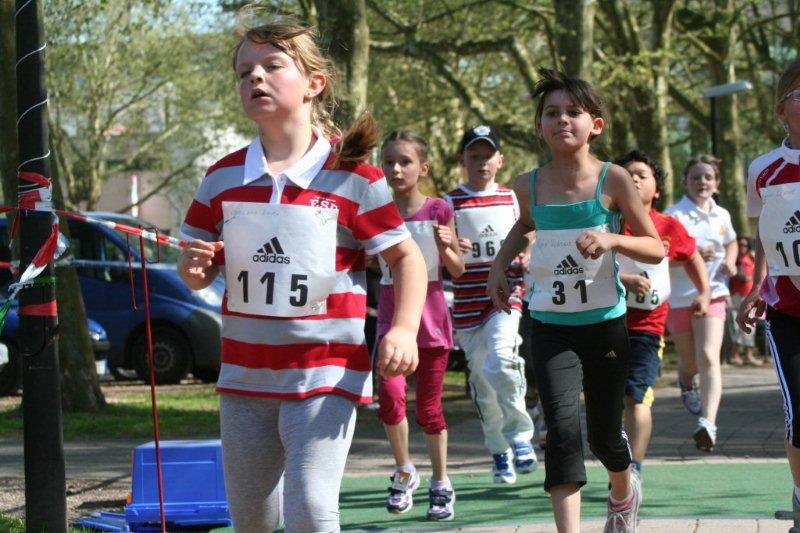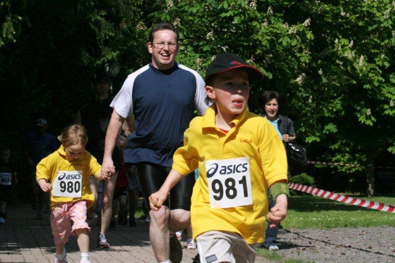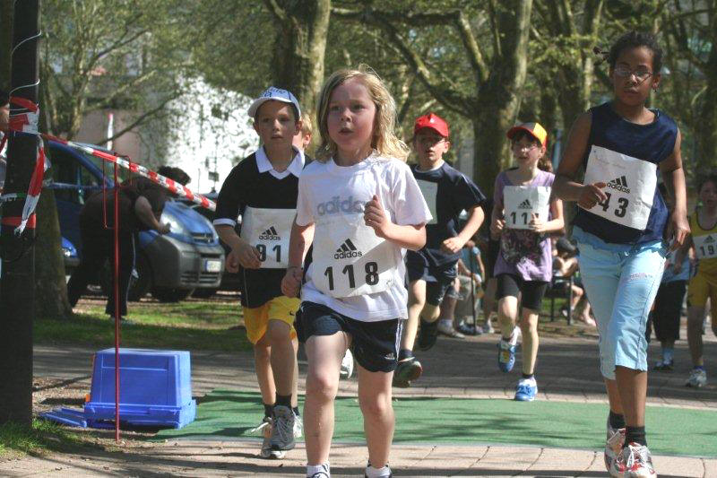 Pünklich um 16.10 Uhr gab Bürgermeister Armin König den Startschuß. Sichtlichen Spaß hatten die 98 Bambinis bei ihrem Lauf über 700 m durch den Burgpark. Im Ziel waren alle mächtig stolz als sie mit einer Medaille belohnt wurden. Die "GS an der Ill in Hüttigweiler" stellte die meisten Teilnehmer.
