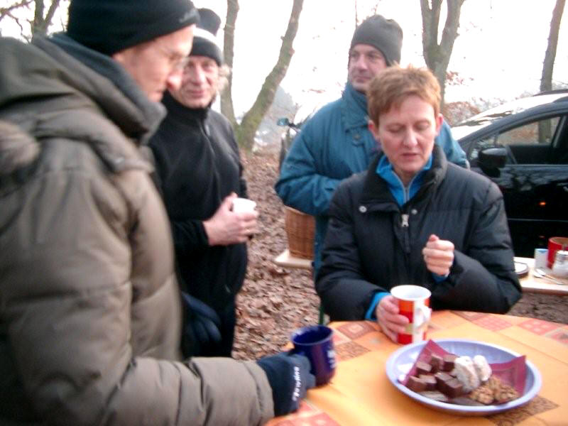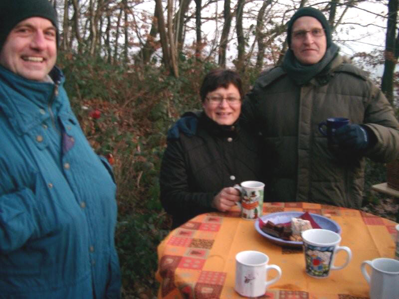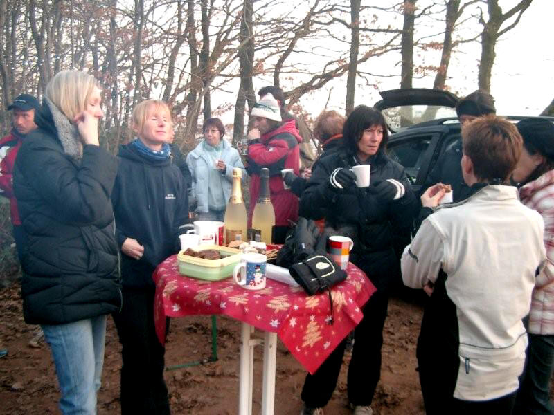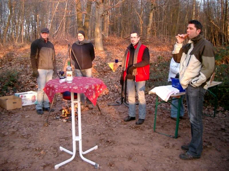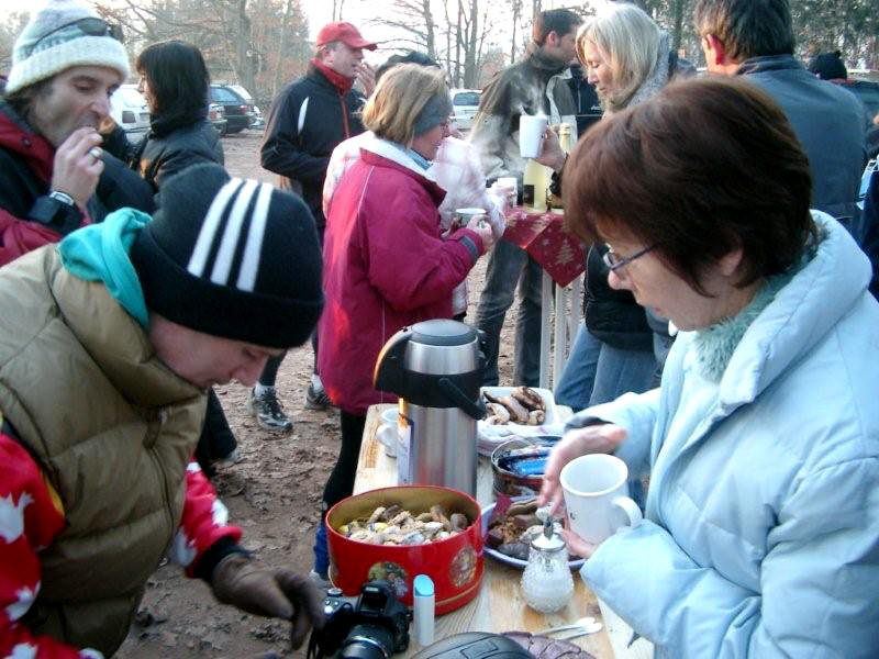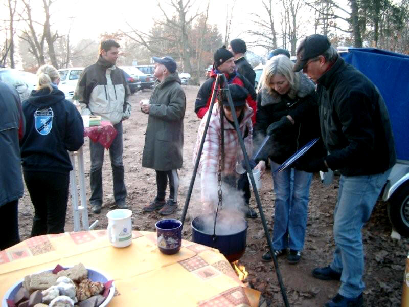 Am Samstag, den 22.12.2007 fand unser traditioneller Glühweinlauf statt, an dem viele Mitglieder und Gäste teilnahmen. Es war knackig kalt mit herrlichem Sonnenschein bei Temperaturen von -3° bis -5°C. Um 15.00 Uhr fand der Lauf statt. Inzwischen hatten Roland, Heinz, Uli und Stefan alles vorbereitet; Tische aufstellen und dekorieren, Feuer anmachen, Lichterkette aufhängen. Anschließend wurde dann Glühwein mit Weihnachtsplätzchen und Kuchen angeboten. Es wurden noch bis spät viele interessante Gespräche geführt, aber wie immer bei solchen Anlässen, auch viel dommgeschwätzt. Wir möchten uns bei allen Kuchen-, Tee- und Plätzchenspendern herzlich bedanken.