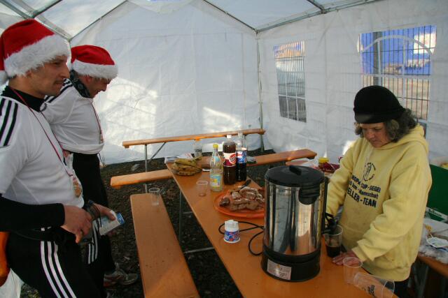Warteschlangen wie im Sommer gab es keine, da sich lediglich 73 Läufer vorangemeldet hatten. Pünktlich fiel dann um 08.00 Uhr der Startschuss, nach dem Günter Pink von der LTF Köllertal zu seinem 42. Marathon in 2006 durch das Feller-Team beglückwünscht wurde.