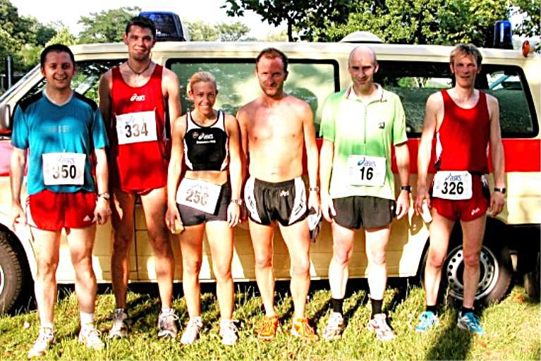 Bernd Zimmer, Patrick Hoffmann, Ulrich Bost, Marianne und Peter Sträßer starteten im 10 km Hauptlauf. Das trübe Wetter am Morgen klärte sich pünktlich zum Start auf und die Sonne sorgte für bestes Läuferwetter. Insgesamt 239 Teilnehmer waren am Start.