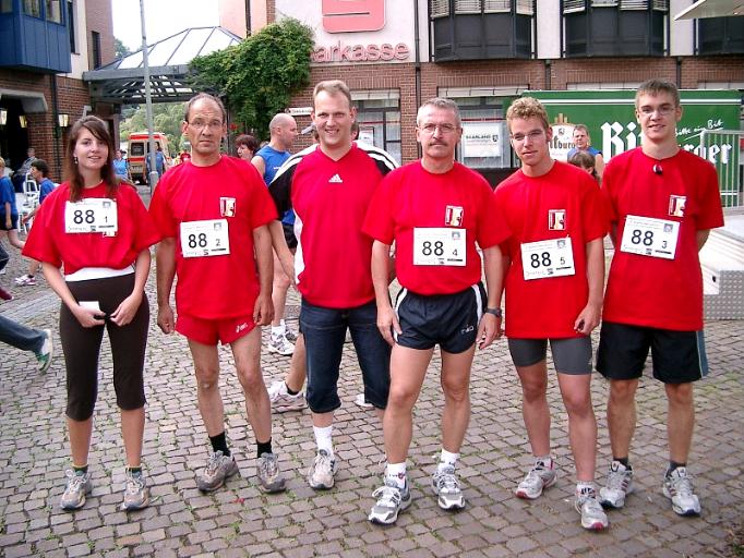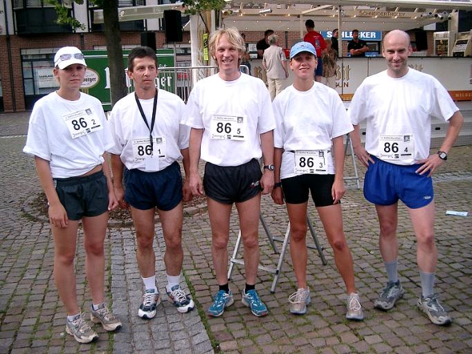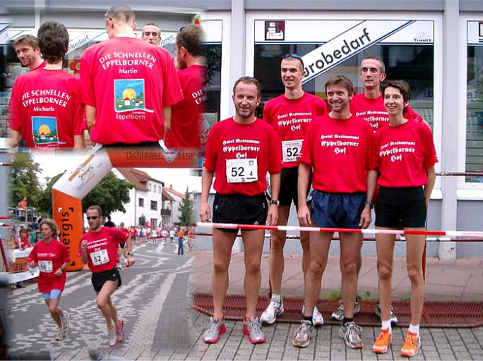 Jörg Ewen, Ulrich Bost, Marianne und Peter Sträßer starten für das "Dreamteam" der Gemeinde Eppelborn zusammen mit Manfred Schmitt vom TV Eppelborn. Auf die vordersten Plätze konnten sie nicht kommen, aber bei den ältesten Staffeln (alle Teammitglieder zusammen mindestens über 240 Jahre) belegten sie den 1. Platz. Gesamtplatz: 26 - Zeit: 1:34:36 Std. |