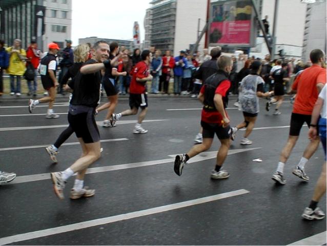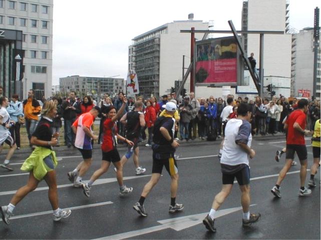 Endlich war es soweit! Nach wochenlangem harten Training war der Tag der Wahrheit gekommen. Nun musste jeder zeigen was er drauf hat. Gegen 07.15 Uhr fuhren wir mit dem Bus bis zur Siegessäule, in die Nähe des Startbereiches, gaben unsere Kleiderbeutel ab und begaben uns zum Start. Um 9.00 Uhr fiel dann endlich der Startschuss. Zu Anfang regnete es noch ein wenig, später blieb es dann aber trocken. Bei ca. 13 ° ideales Marathonwetter. Nach teils gelungenem oder weniger gelungenem Marathon trafen sich die Läufer mit ihren Begleitern am Familietreffpunkt. Von dort fuhren wir wieder mit U- und S-Bahn ins Hotel, wobei einige an den Treppen Probleme mit den Beinen hatten. Nach einer kurzen Ruhepause zogen wir gegen 17.00 Uhr zur "Vertretung des Saarlandes", wo ein Empfang für alle saarländischen Marathonläufer, zu dem die Hausherrin Frau Beck geladen hatte, stattfand. Mit saarländischem Bier und Lyoner konnten die leeren Speicher wieder gefüllt werden. Hier konnte man im Gespräch mit anderen Läufern den Marathon Revue passieren lassen.