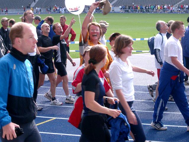 Danach stand eine Marathon-Après-Party mit einer Berliner Musikgruppe im Groschenkeller auf dem Programm. Erwin Schütz ehrte alle Marathonteilnehmer mit einem Präsent. Schnellste Läuferin unserer Gruppe war Karin Deller (LSG Quieschied) in 3:54 h, und schnellster Läufer war Gerhard Martin (LTK Merchweiler) in 2:56 h. Den stärksten Eindruck hinterlies aber die Power-Frau Beate Trappen-Schweitzer. Sie startete sowohl Samstags beim Skater-Marathon als auch Sonntags beim Läufer-Marathon und beendete beide Läufe erfolgreich.