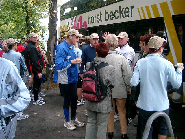 Um 21.15 Uhr war Abfahrt nach Berlin im Doppeldecker-Bus von Horst Becker-Reisen. Die Verantwortung für unsere Sicherheit lag in den Händen von Fahrer Bernd. Managment und Reiseleitung lag in den Händen von Erwin Schütz. An Bord waren 72 Personen, davon 28, die für den Marathon gemeldet hatten. Die Reisenden kamen überwiegend von der LTF Urexweiler, LSG Quierschied, LLG Wustweiler und LTK Merchweiler. Auch waren noch Vereinslose aus Illingen und Hüttigweiler mit dabei. Der Bus fuhr, mit einigen Pausen, die ganze Nacht durch bis Berlin.