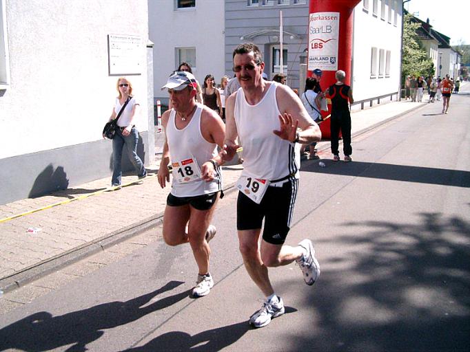15.04.2007 - St. Wendel. Bürgermeister Bouillon hatte zum Debut des 1. St. Wendeler Marathon eingeladen und 2500 Teilnehmer waren dieser Einladung gefolgt. Eine Super-Organisation herrschte an der gesamten Strecke, sowohl für die Teilnehmer als auch für die Zuschauer. Lediglich das Wetter war für die Läufer zu warm, so dass alle ihre anvisierte Zeit etwas nach hinten verschieben mussten. Kein Wölkchen am Himmel und 26 ° bedeutete, dass viel trinken angesagt war. Marc Wagner und Michael Hassdenteufel liefen ihren 1. Marathon und Susanne Wendels ihren ersten Halbmarathon und das gleich unter diesen sehr schwierigen Bedingungen. Allen herzlichen Glückwunsch zu diesem Ergebnis bei dem harten Wettkampf! Bilder in der Galerie |