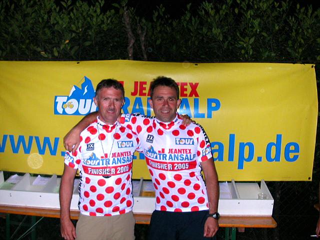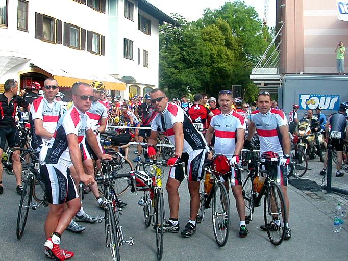Einigen läuft das Glück hinterher! So gewann Udo Jakobs in einem Preisausschreiben einen Team-Startplatz im Wert von über 500,- Euro bei der Tour Transalp. Das ist ein Fahrradrennen über 7 Tage mit reinen Berg-Tagesetappen zwischen 71 und 147 km. Zu einem Team gehören 2 Leute. Schnell hatte Udo seinen Vereinskameraden Heiko Schneider als zweiten Teamgefährten überredet. Der Anfangsstart befand sich in Oberammergau. Ziel nach 7 Tagen war Riva del Garda am Gardasee. Dazwischen lagen 17 Pässe, die es in sich hatten. www.tourtransalp.de/ Team jeantex 6 Tagesberichte über Udo und Heiko von Markus Zewe